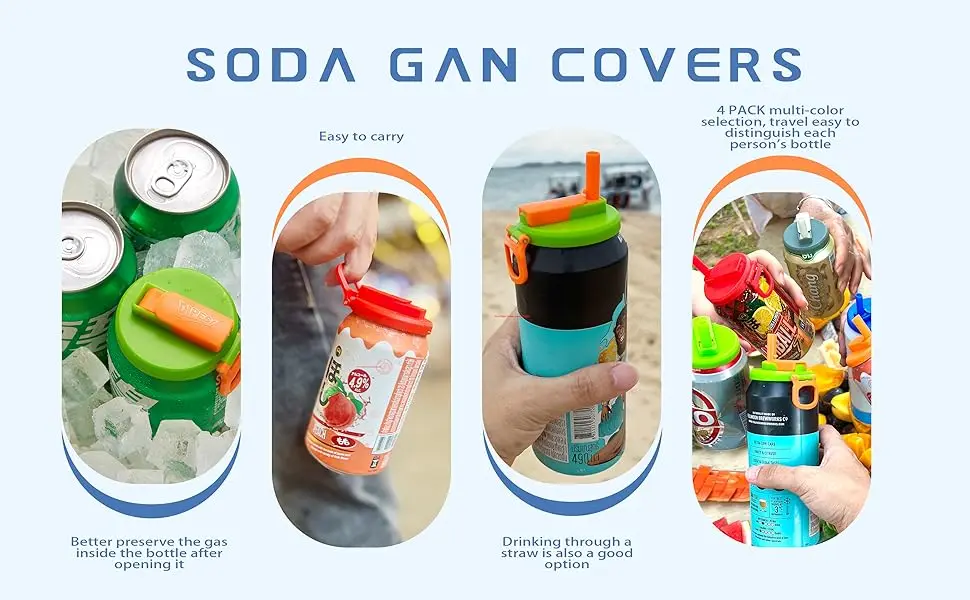 Soda Can Lids with Straw,Silicone Straws Soda Cans Covers Lid,Bpa-Free, Reusable for Can Cover for Soda Beverage
